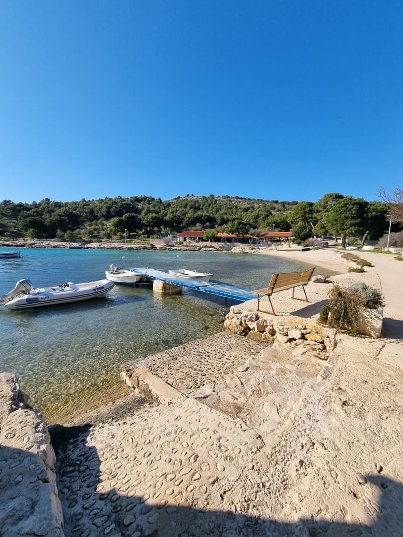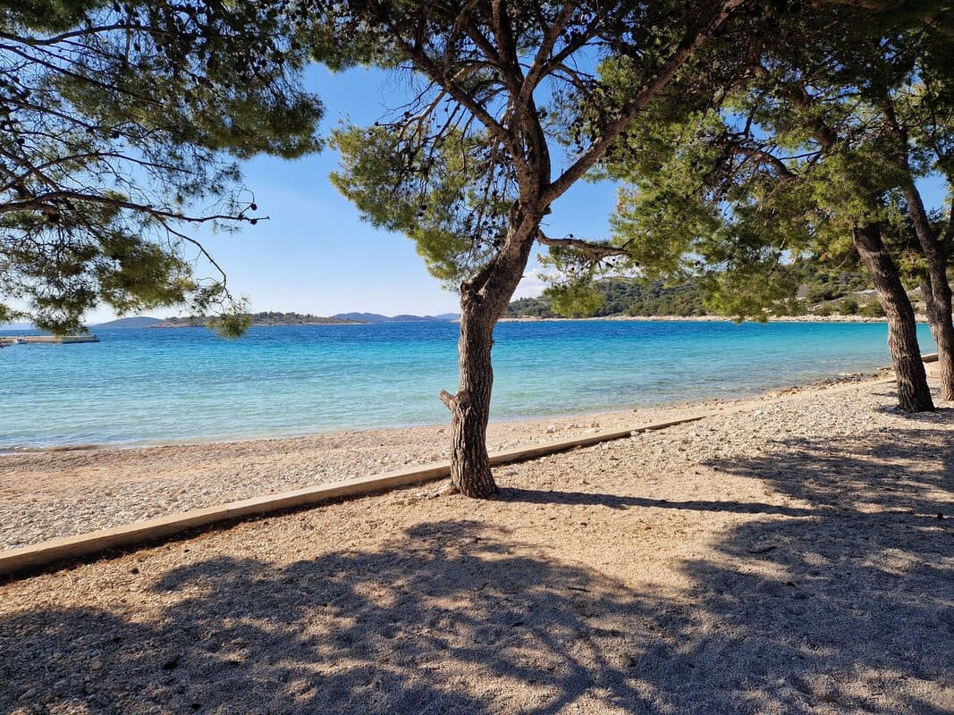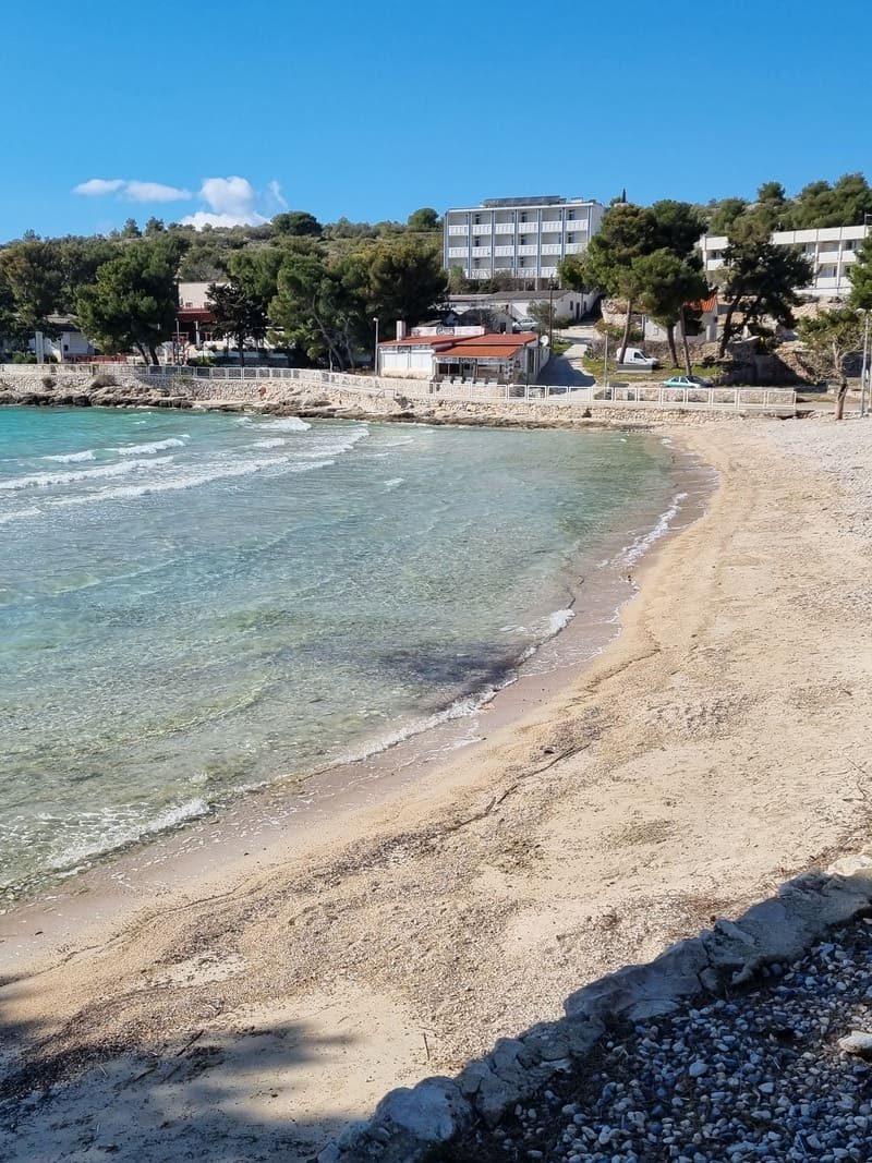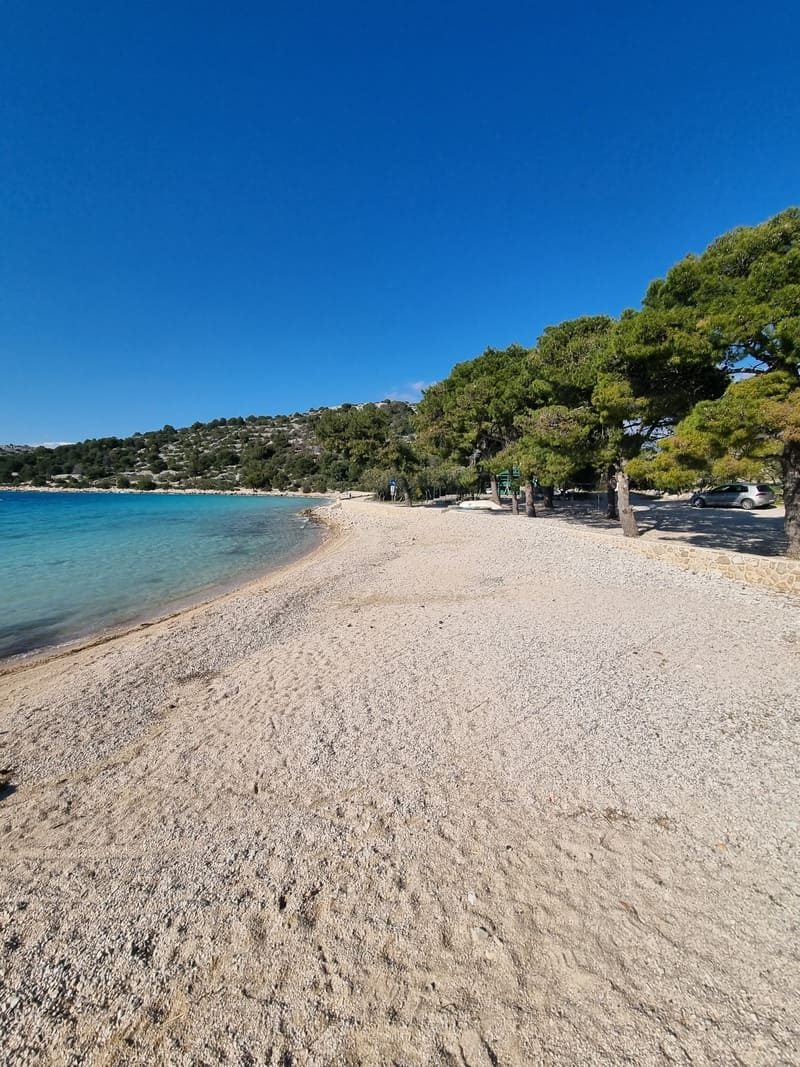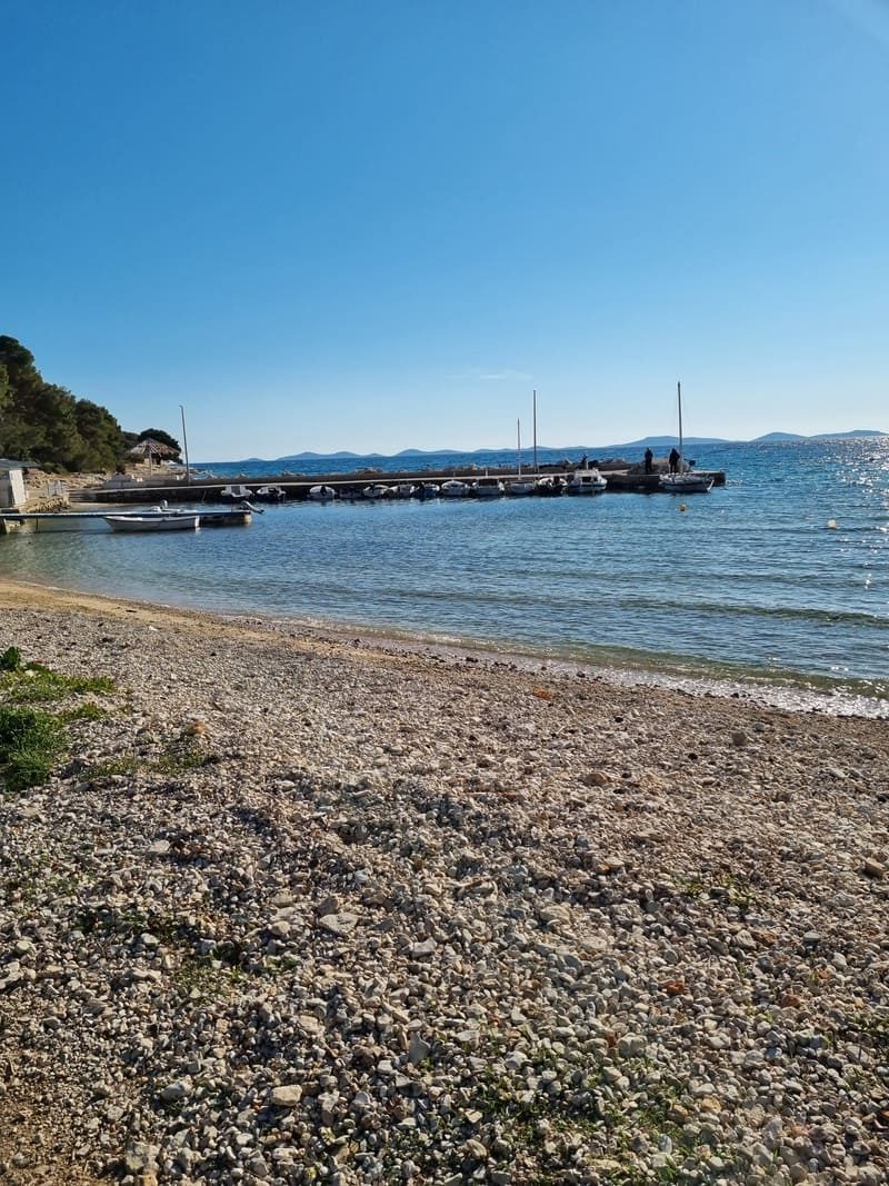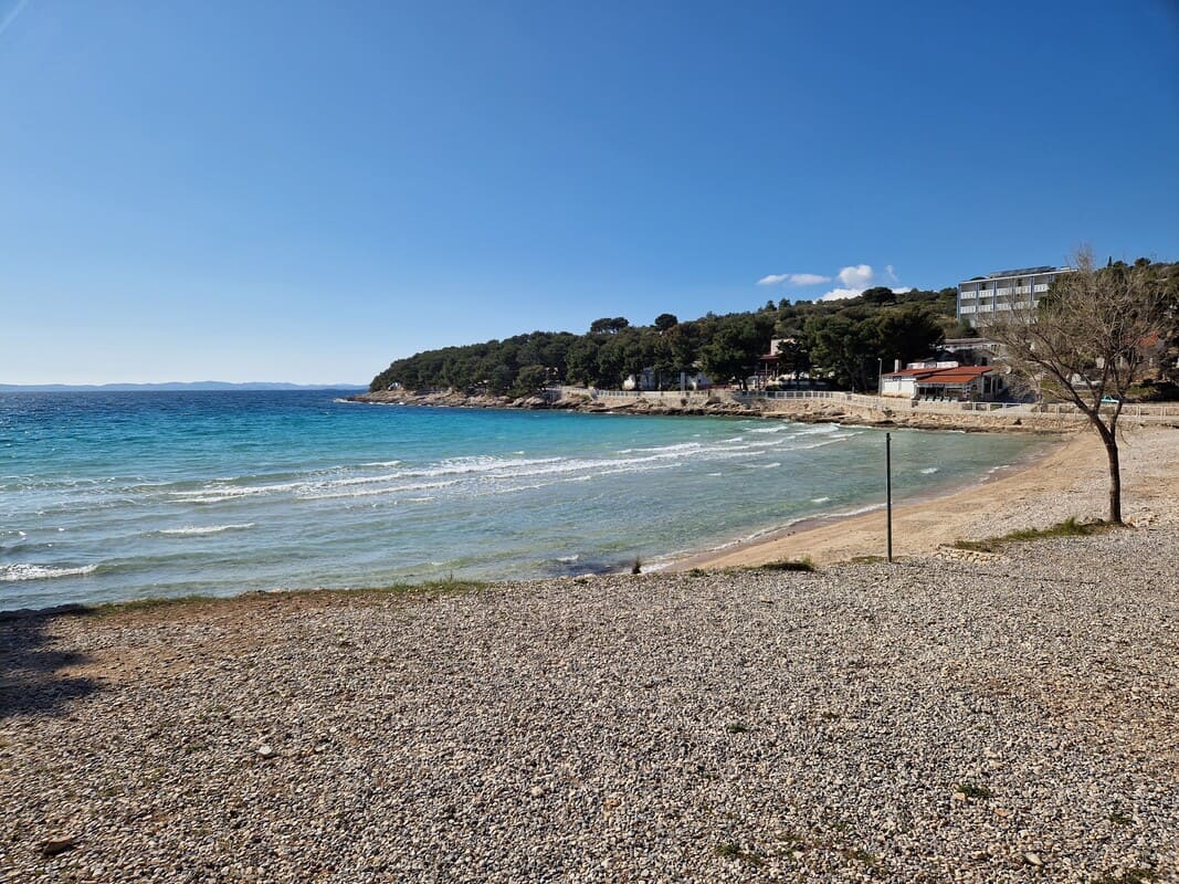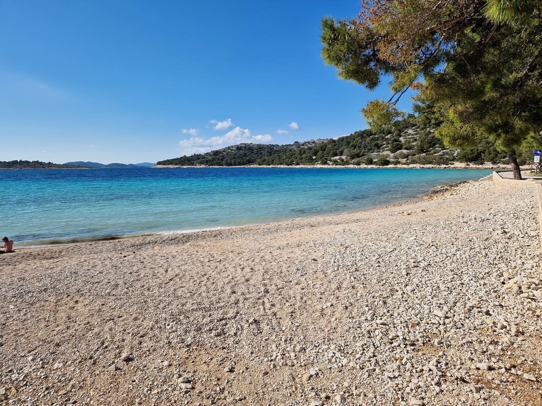 Uređena plaža se nalazi u maloj uvali i ima mol. Kupanje u čistom moru i netaknutoj prirodi s puno hlada. Sa strane je stjenovita, a u središnjem dijelu je šljunčana. Pješčani dio je u manjini. Hladovinu joj pružaju borova stabla. S plaže se možete diviti Nacionalnom parku Kornati. Obzirom da se ne nalazi u dubokoj uvali, zaštićena je od valova i vjetra.